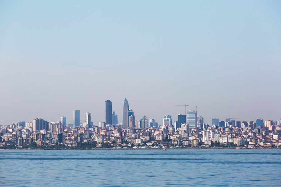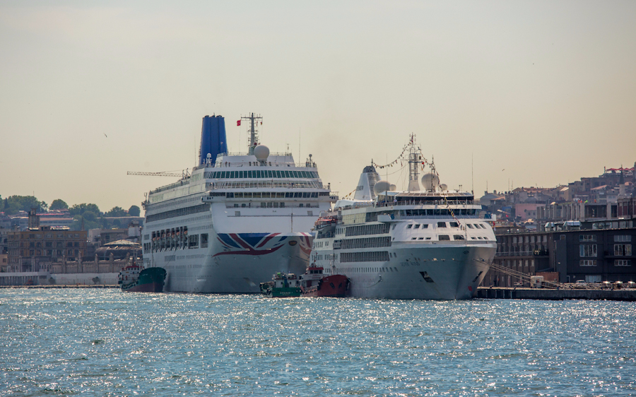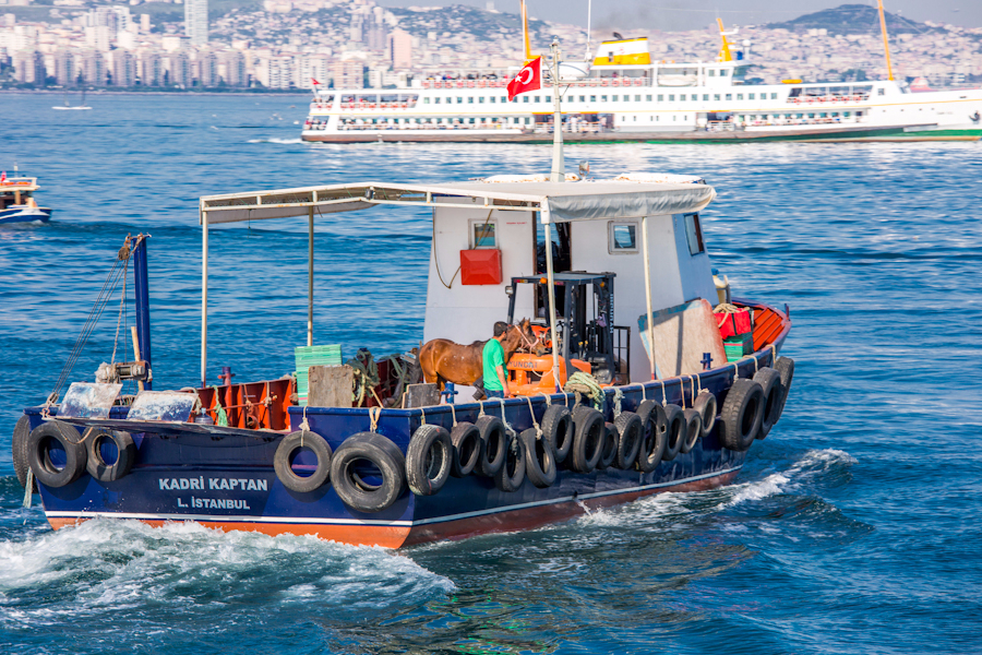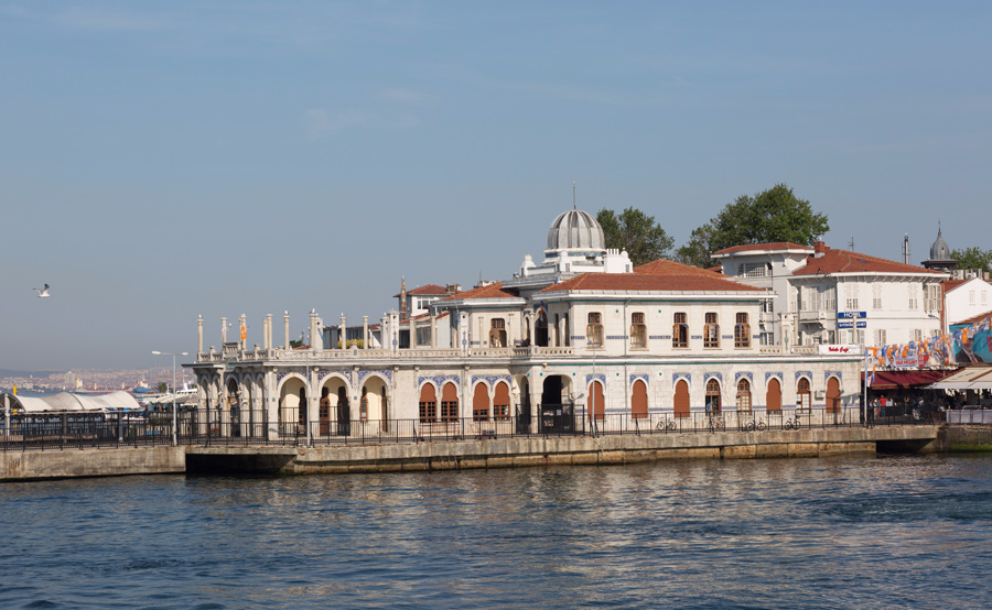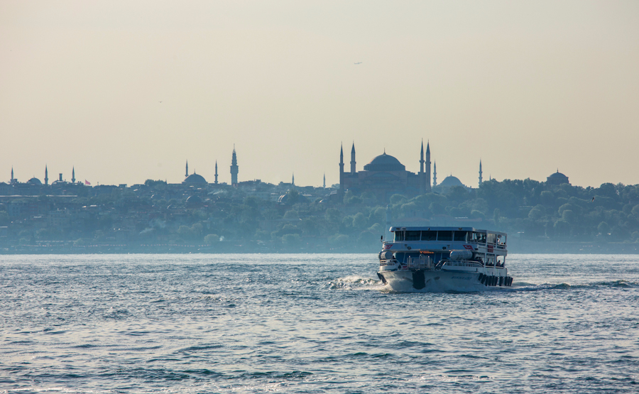 Избавиться от дневной жары мы решили на морской прогулке. Ближайшей пристанью оказалась пристань Кабаташ. Мы купили билет на ближайший кораблик, им оказался рейсовый паром до Адалар (или Принцевых островов) 6 лир в один конец. Адалары — это небольшой архипелаг из 9 островов в Мраморном море возле азиатского побережья Стамбула, в 20 км к юго-востоку от центра города. Паром идет до самого большого острова Бюйюкада — его площадь — 5,36 км². Сначала мы с палубы любовались архитектурой старого Стамбула