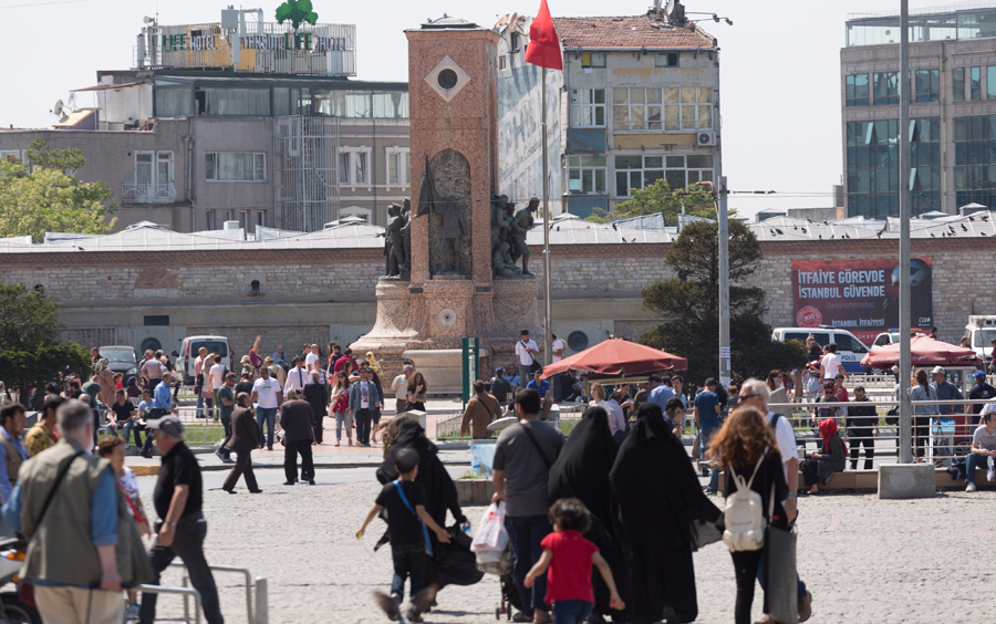 А вот и знаменитая площадь Таксим. Думаю ее название знают даже те, кто ни разу в Стамбуле не был. Рядом с площадью небольшой не то парк, не то сквер, там мы и расположились на травке отдохнуть от жары в тени деревьев. По парку постоянно снуют разносчики горячего чая, ледяной воды и бубликов, так что умереть от голода и жажды в этом городе невозможно)))