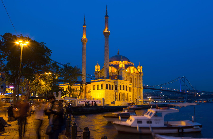Причаливаем на пристани Кабаташ и долго пытаемся выяснить как добраться до до мечети Ортакёй. Наконец с третьей попытки находим нужный автобус. В отличии от европейских городов (да и от Москвы тоже) остановки, а автобусе никак не называют, светового табло тоже нет. Но нам опять повезло, рядом ехал русскоговорящий мальчик (из Туркменистана), который и подсказал нам где удобнее выйти. Однако по пятницам в Стамбуле пробки не хуже московских и мы решили выйти на пару остановок раньше и дойти пешком, по-любому это было приятнее, нежели стоять в переполненном душном автобусе. Возле мечети (а тут еще и одноименная пристань) множество кафе, небольшой сквер и толпы гуляющих. Кстати почему-то только в этой части Стамбула я смогла найти в кафе кумпир (это такая запеченная картошка с кучей начинки, типа нашей Крошки-Картошки) — недорого, но очень сытно и вкусно.